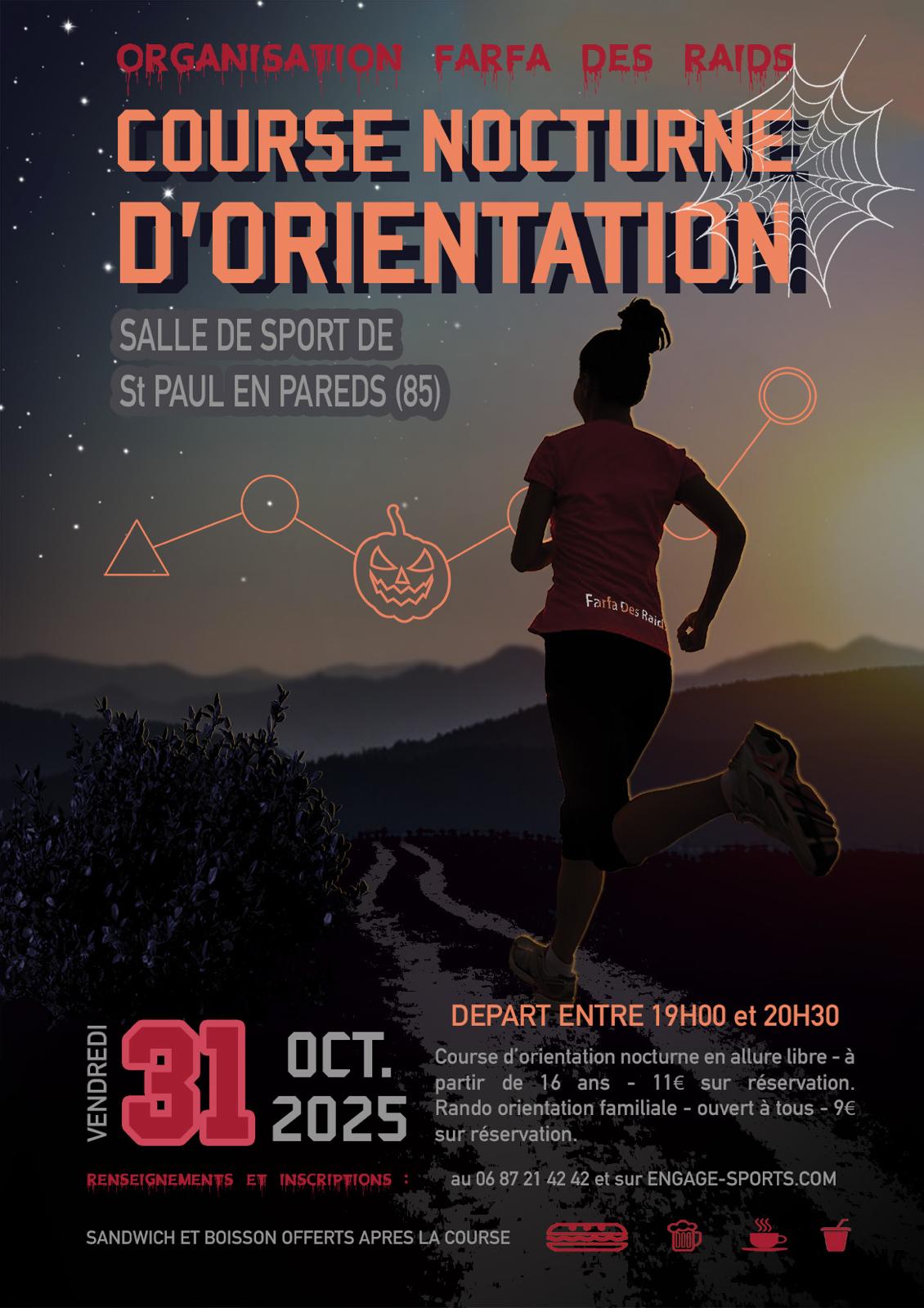 Vendredi 31 octobre, c’était la traditionnelle CO nocturne d’Halloween concoctée par Farfa des Raids. Bonne nouvelle pour les Raid’Apte en manque de CO (hors raid, notamment ceux de Cap à l’ouest et de Raid Landes Aventure) depuis plusieurs mois. Cinq équipes orange étaient présentes à Saint-Paul-en-Pareds pour chercher les fanions.