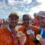 Avec le classement de la veille, on prend la première vague avec Fabien, et Seb et Christophe pour un départ à 7h30 en haut de Urepel. Dany/Anthony prendront la 2ème pour un départ à 8h30. Dès le départ, on choisi de partir tranquille pour voir où en est mon genou. On est les derniers de cette vague de 400 coureurs. Mon genou me fait mal dès le début, et je me dis que ça va être long. Fabrice me regarde pas trop, et je fais l’effort. Heureusement, il y a beaucoup d’arrêt dû au bouchons ; ça fait du bien. Et le premier ravito arrive au bout de 5km. Par contre, dès la reprise, on a monté, et la douleur est partie. Je comprend vite que c’est uniquement les descentes qui me font mal. Je gère donc la course pour me réserver pour la dernière descente qui sera encore plus pentue que la veille. Je sens Fabrice soulagé de me voir pas si trop mal. Seb et christophe ont choisi aussi d’assurer et font la course en queue de vague. Par contre ils ont la caisse ; ils peuvent envoyer. Seb ne se serre même pas de ces bâtons, et ne fait que parler : il est en forme ! Même pendant la dernière grosse montée, ils n’envoient pas. Je fais l’effort de rester derrière. Ce n’est qu’au dernier ravito que la course peut changer entre nos 2 équipes. Seb et Christophe ne restent pas trop longtemps et partent. Moi et Fabrice restont plus de temps, et on repart dèjà avec 2 minutes de retard. Fabrice me motive, et c’est parti pour ces terribles 5 km. Au loin, on les aperçoit : je prend le temps d’intervalle, et bim : 3 minutes. On les aperçoit encore un peu au loin 5 minutes après, et bim : plus de 4 minutes d’écart et il reste encore 3 km à descendre. Ca va être chaud, et je ne peux pas avancer plus vite : au contraire, je fais quelques pause pour soulager le genou. Mais faut avancer, alors j’avance en gueulant (T’as pas mal ! Allez ! ) Et finalement, j’ai réussi à aller en bas. Par contre, changement de la veille, j’ai la caisse pour la course de plat : il reste environ 500m ; et avec Fabrice, on envoie tout ce que l’on peut pour diminuer notre écart avec Seb et Christophe (on avait 13 minutes d’avance au départ, et 9 minutes au km 22). On termine à fond, sous les encouragements de Fabien/Nadège et quelques Rando Raid 85. Génial ! On termine ! Et on apprend en plus que l’on sera devant Seb et Christophe à 6 minutes. Une paille sur 50 km en montagne. Ravi, on va pouvoir décompresser. Ravito final, un tour de cryothérapie dans le torrent, encouragement de Dany/Anthony qui terminent aussi !